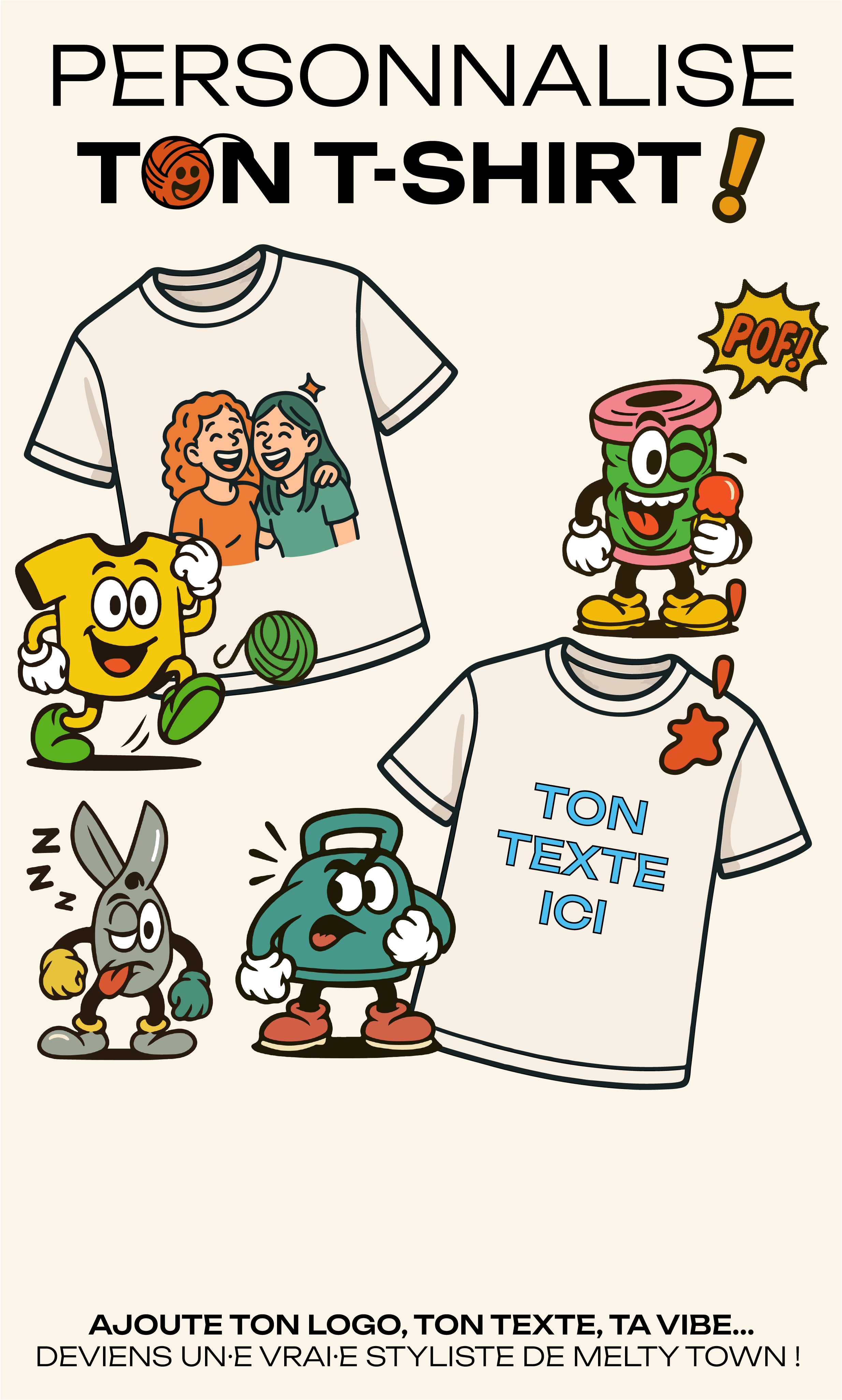 Nous proposons des t-shirts 100 % coton de haute qualité, personnalisables avec vos logos, textes ou visuels.